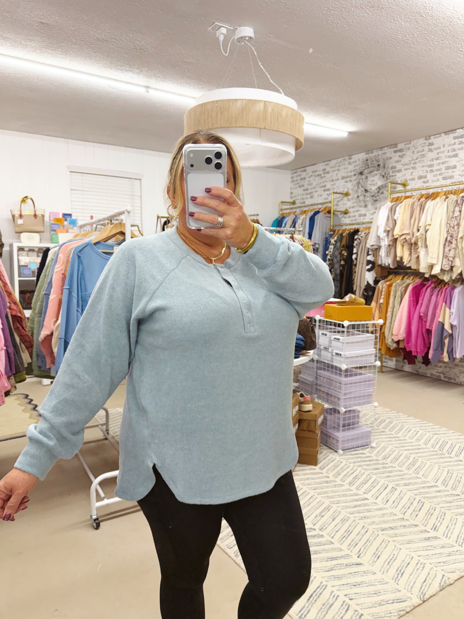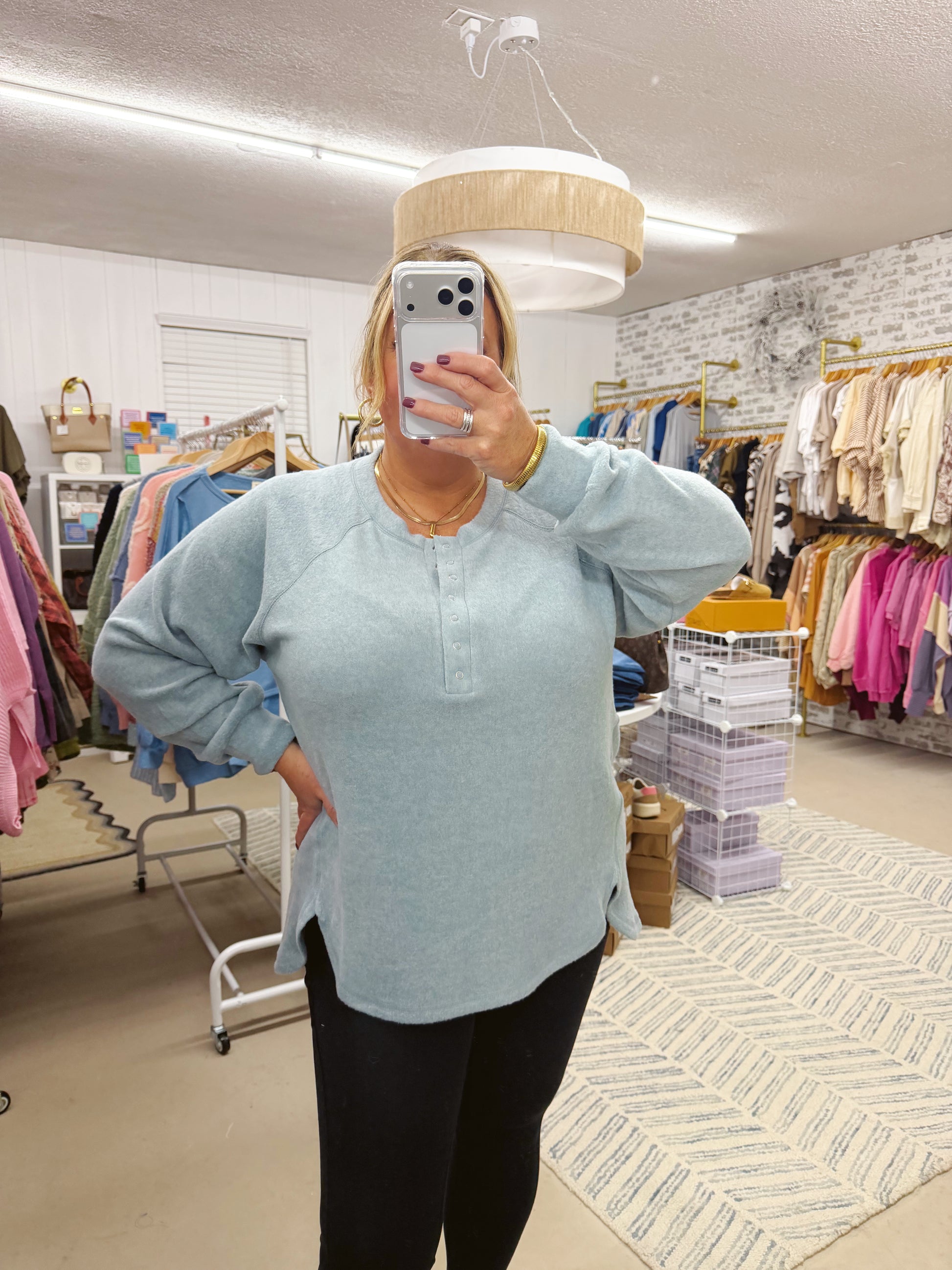 Say hello to your new everyday-go-to. This soft, lightweight henley is one of those tops you throw on once and wonder how you ever lived without it. The cozy knit fabric drapes beautifully with a relaxed, flowy silhouette that flatters every body and keeps comfort first. Finished with functional buttons and a split neckline. Loose fit