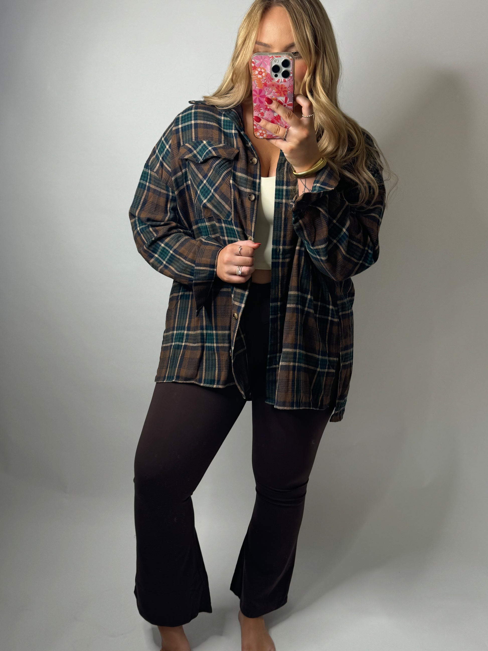 Butter-soft, second-skin flare leggings with a crossover waist detail! Chocolate brown.