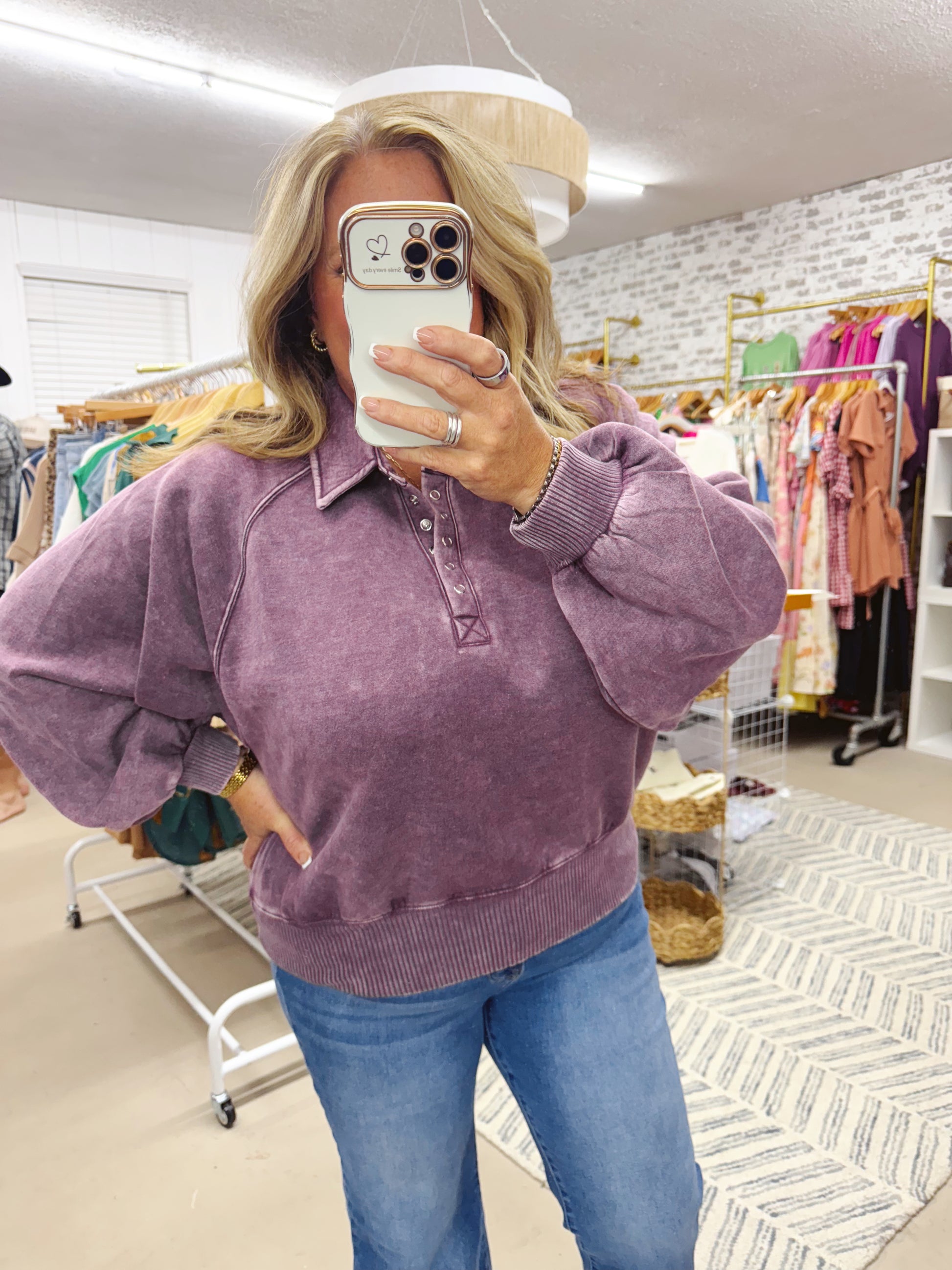 A BEST SELLER! Designed with a relaxed fit, collared neckline, and subtle button-front detail, it blends casual comfort with boutique flair. The soft fabric and balloon-style sleeves add an elevated touch, while the ribbed hem creates a flattering shape. Oversized short fit