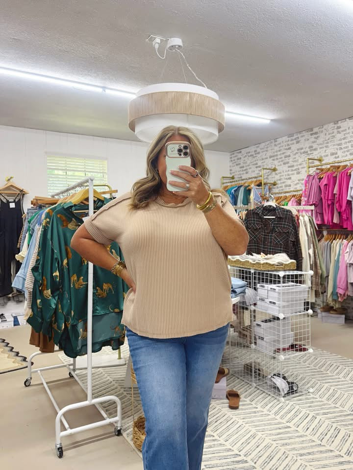 Your go to basic top for fall. True to size ribbed tee but does have stretch!