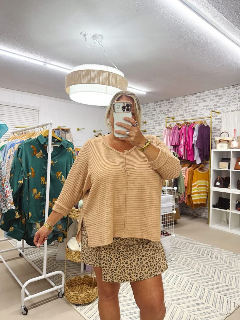 Oversized waffle knit top.