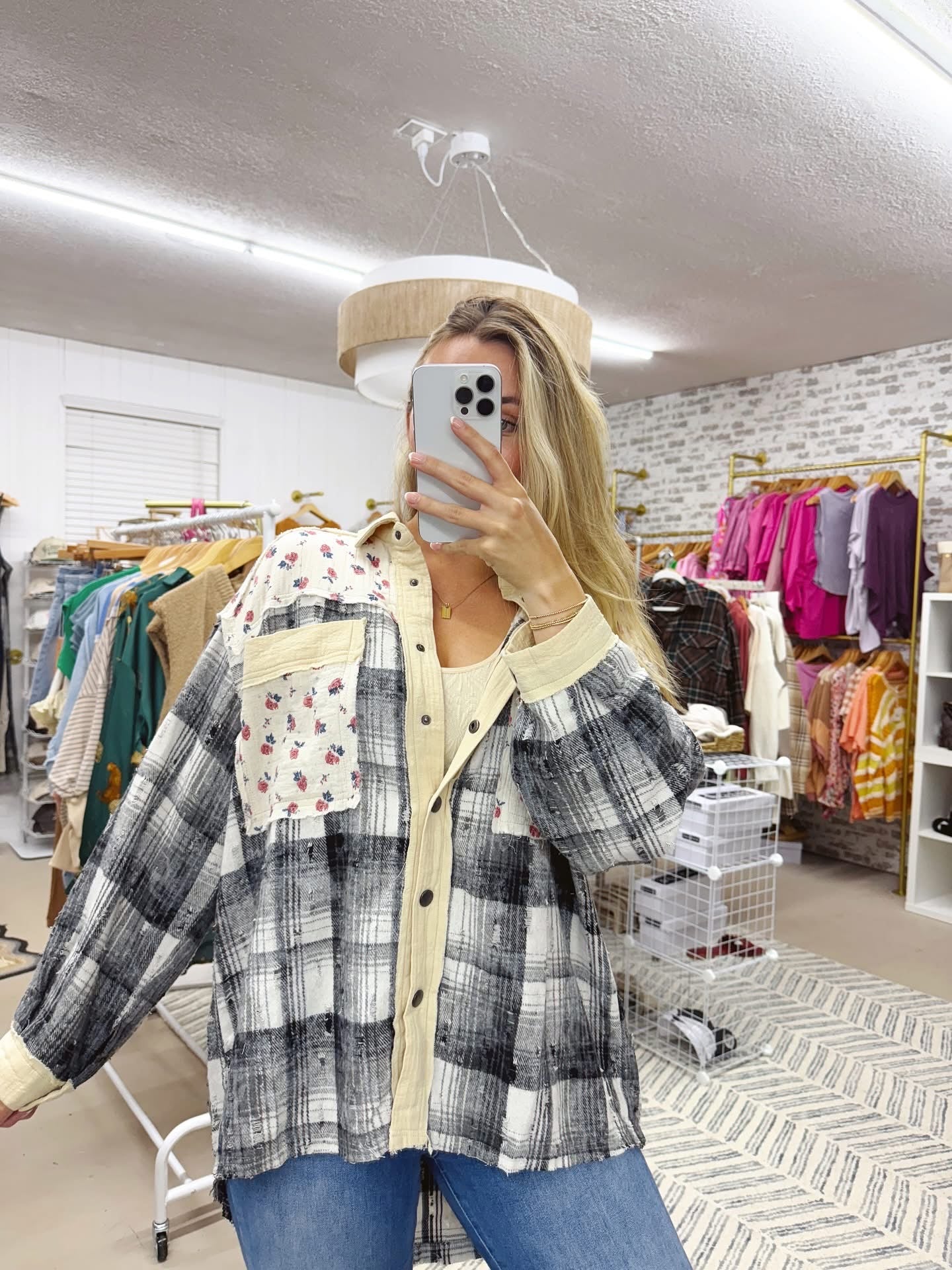 It’s flannel season! This shacket has the perfect mix of floral and plaids with snap buttons! Perfect by itself or pair it with your favorite tank or tee. Oversized fit! POL brand!